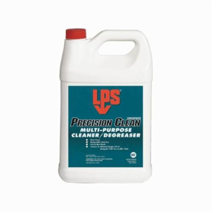 LPS® Degreaser, Multi-Purpose, Series: Precision Clean, 1 gal, Bottle, 1 gal Net Weight, Liquid, Turquoise/Greenish Blue, Citrus, 6.1%, 63 g/L, 0.53 lb/gal VOC, 13 pH, 1.05 to 1.09 Specific Gravity, Composition: Dipropylene Glycol Monomethyl Ether, Silicic Acid, Di-Sodium Salt, Tetrapotassium Pyrophosphate, Tripropylene Glycol Methyl Ether