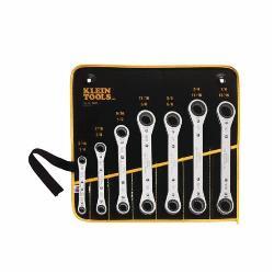 Klein® Box End Wrench Set, Ratcheting, Imperial System of Measurement, 1/4 x 5/16 to 13/16 x 7/8 in, 7 Piece, 12 Point, Offset, Box End Drive, Polished Chrome