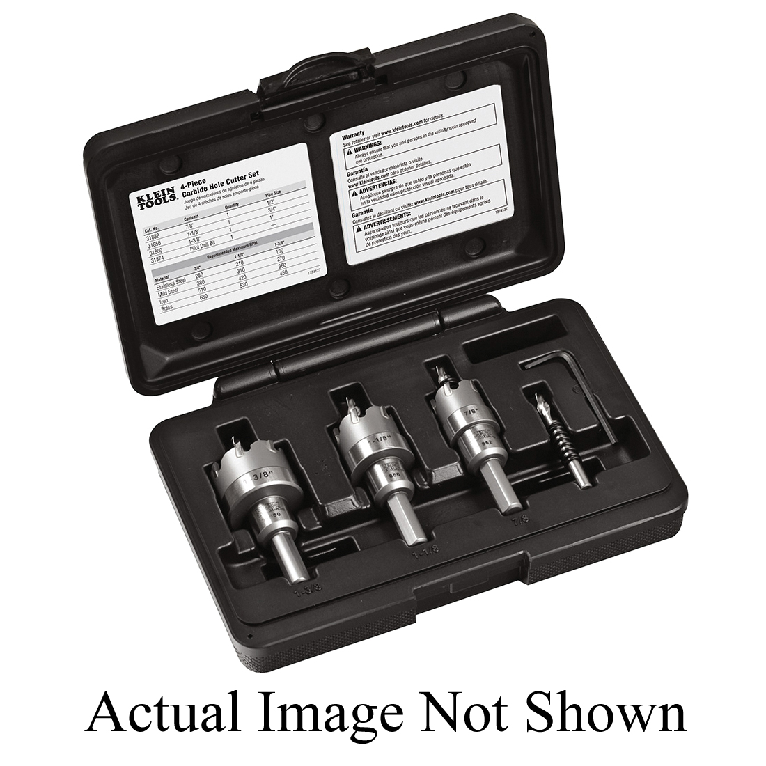 Klein® Hole Cutter Kit, 4 Piece, 1/2 to 1 in Conduit/Pipe, Carbide