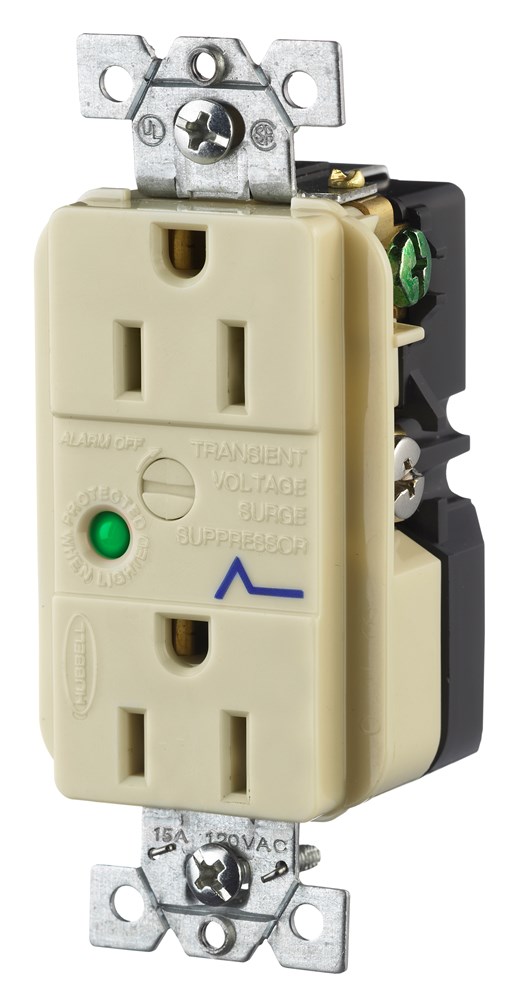HBL5260ISA TVSS Duplex Standard Surge Suppression Receptacle With Light, 125 VAC, 15 A, 60 Hz, 1 ph Phase