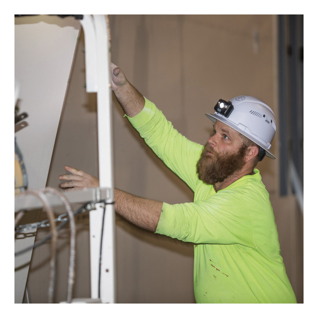 Klein® Hard Hat, Type 1 Full Brim Style Vented, 12.5 in L x 10.7 in W x 6.5 in H, Fits Minimum Hat Size: 6-1/2 in, Fits Maximum Hat Size: 8 in, White, ABS/Polycarbonate, 4-Point Reverse Donning Suspension, ANSI Electrical Class Rating: Class C, ANSI Impact Rating: ANSI Z89.1-2014, Slotted: Front/Back/Both Side, Ratchet with Pivot Adjustment