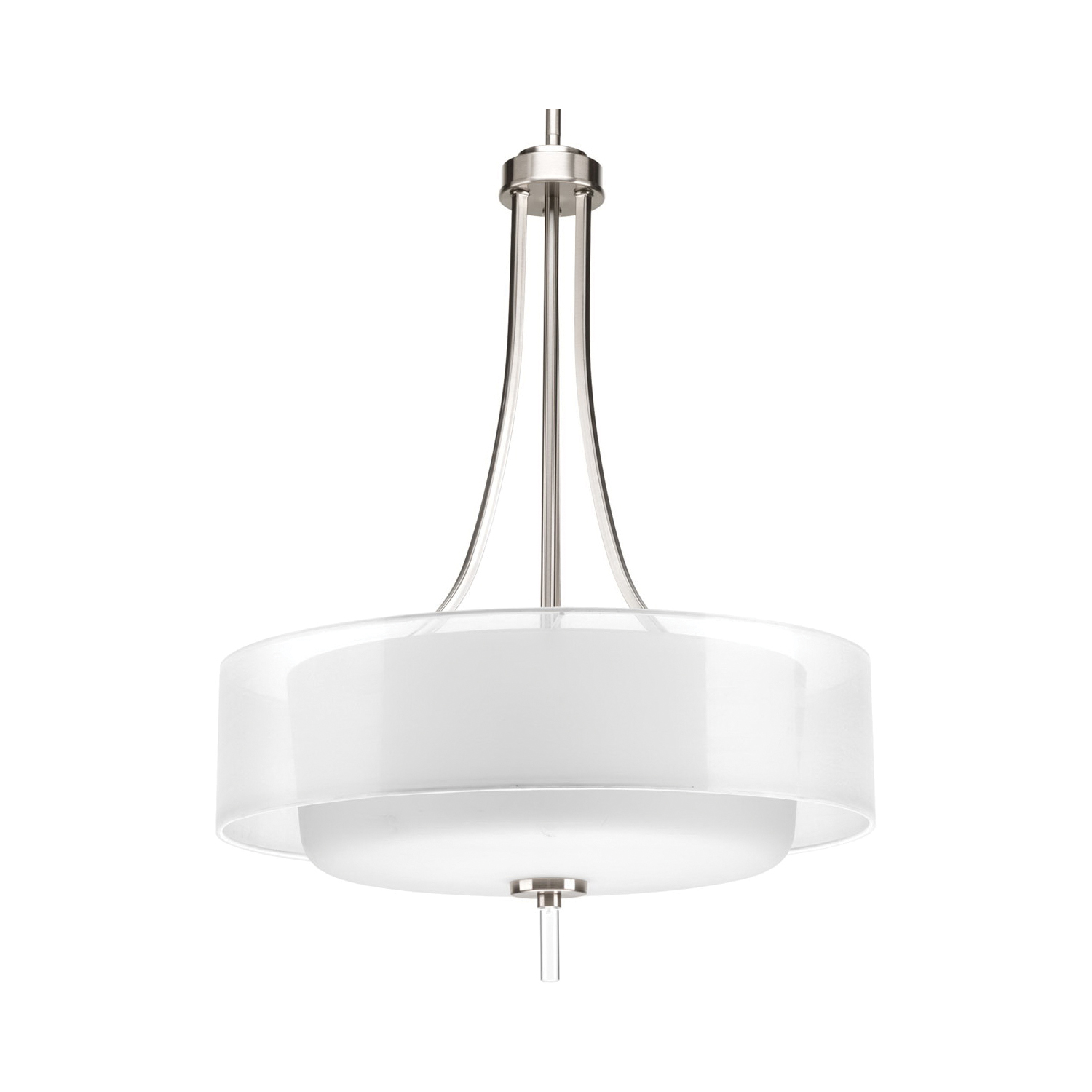 Progress Lighting® Pendant Light, Formal/Traditional Invite, 120 VAC, Incandescent Lamp, 100 W Lamp, Medium Lamp Base, 4 Lamps, Gray Light, White Silk Mylar Shade, Ceiling/Stem Mounting, Steel Housing Material, Brushed Nickel Plated Housing Finish, 27-3/8 in H x 20 in W Dimensions