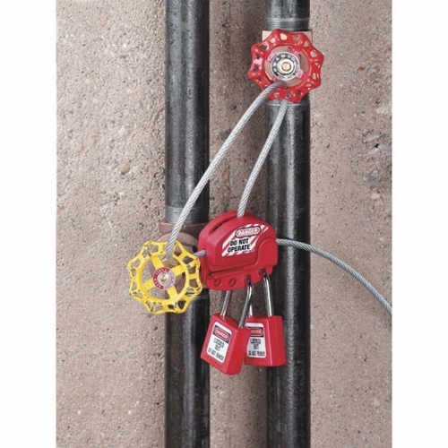 The adjustable cable lockout from IDEAL® offers an infinitely adjustable safety hasp and cable! it is IDEAL® for multiple circuit breaker panels and side by side gate valve lockouts. The tough, lightweight dielectric thermoplastic body is designed to withstand chemicals, and performs effectively in extreme conditions. Up to 4 workers can apply their personal safety locks. The adjustable cable lockout also comes complete with high visibility, reusable, write-on safety labels (English, French and Spanish).