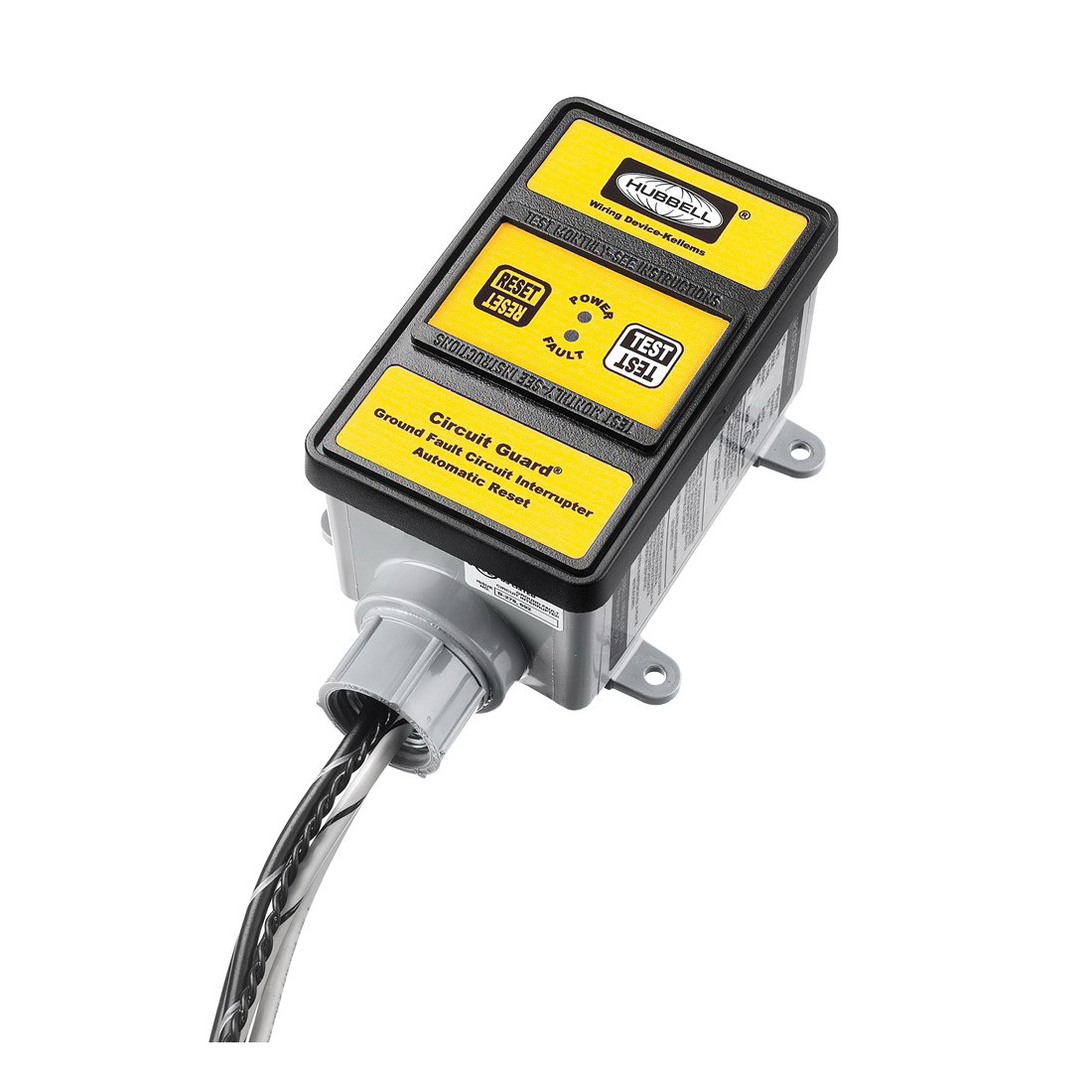 Wiring Device-Kellems Circuit Guard® Hard Wired GFCI, 3-Wire Automatic Multi-Strand Industrial Grade, 120 VAC, 30 A, 3600 W Power, -30 to 150 deg F, NEMA 4X Enclosure, Thermoplastic, Black/Yellow, 24 in L Dimensions