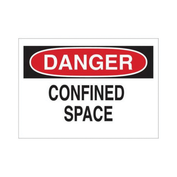 60535 Rectangle Confined Space Sign, DANGER, 10 in H x 14 in W, Black/Red on white, B-401 High Impact Polystyrene, Surface Mounting