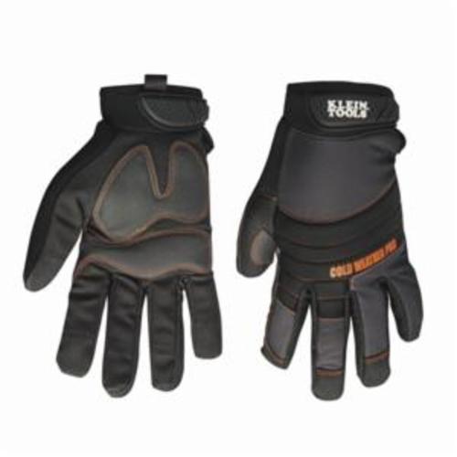 Klein® Journeyman™ Cold Weather Pro Gloves, Insulated, M Size, Rubber Palm, Fabric, Black, Reinforced Thumb Style, Nylon Lining, Hook and Loop/Knuckle Strap Closure, Resists: Water