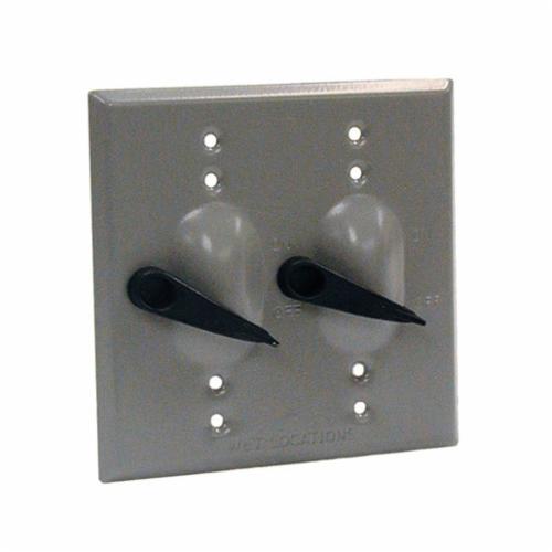 BELL® Lever Switch Cover, Weatherproof, 2 Gangs, 4-17/32 in Length, 4-17/32 in Width, Squared Shape, Surface Mounting, Die Cast Aluminum, Powder Coated, Gray