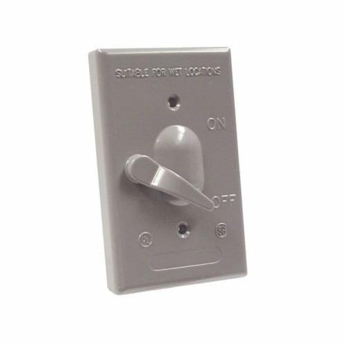 BELL® Lever Switch Cover, 1-Pole Weatherproof, 1 Gang, 2-53/64 in Length, 39/64 in Width, 4-39/64 in D, Vertical Mount, Surface Mount, Die Cast Aluminum, Powder Coated, Gray