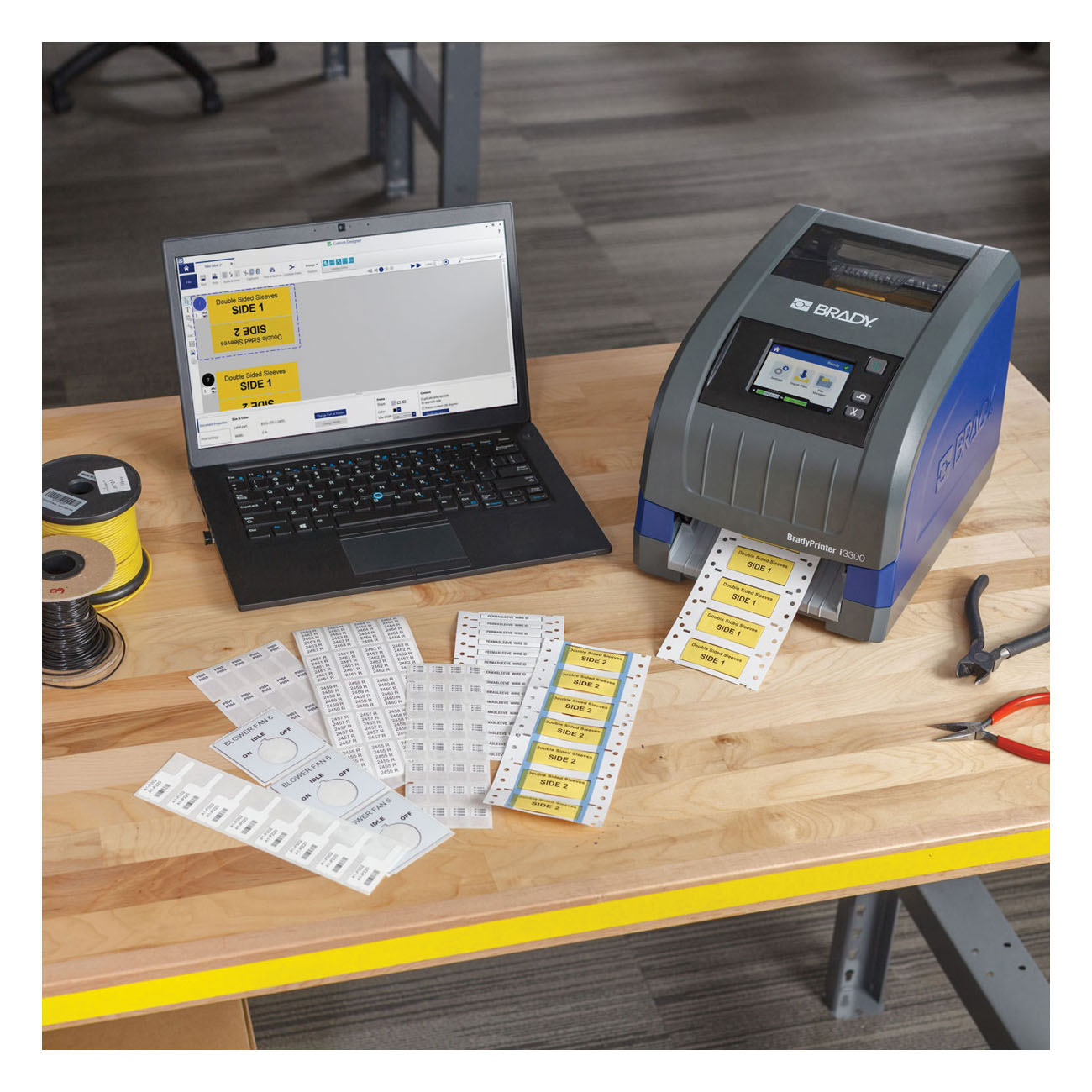 Brady® BradyPrinter™ Sign and Label Printer, Series: i3300-C, Thermal Transfer Print, 4-1/4 in Tape Width, 5 ft Tape Length, 300 dpi Resolution Printhead, 100 to 240 VAC at 50 to 60 Hz, For Use With: B33, B30C, B30 and B30EP Series Media, Color LCD Touch Screen, 9-1/2 in H x 9 in W x 12 in D
