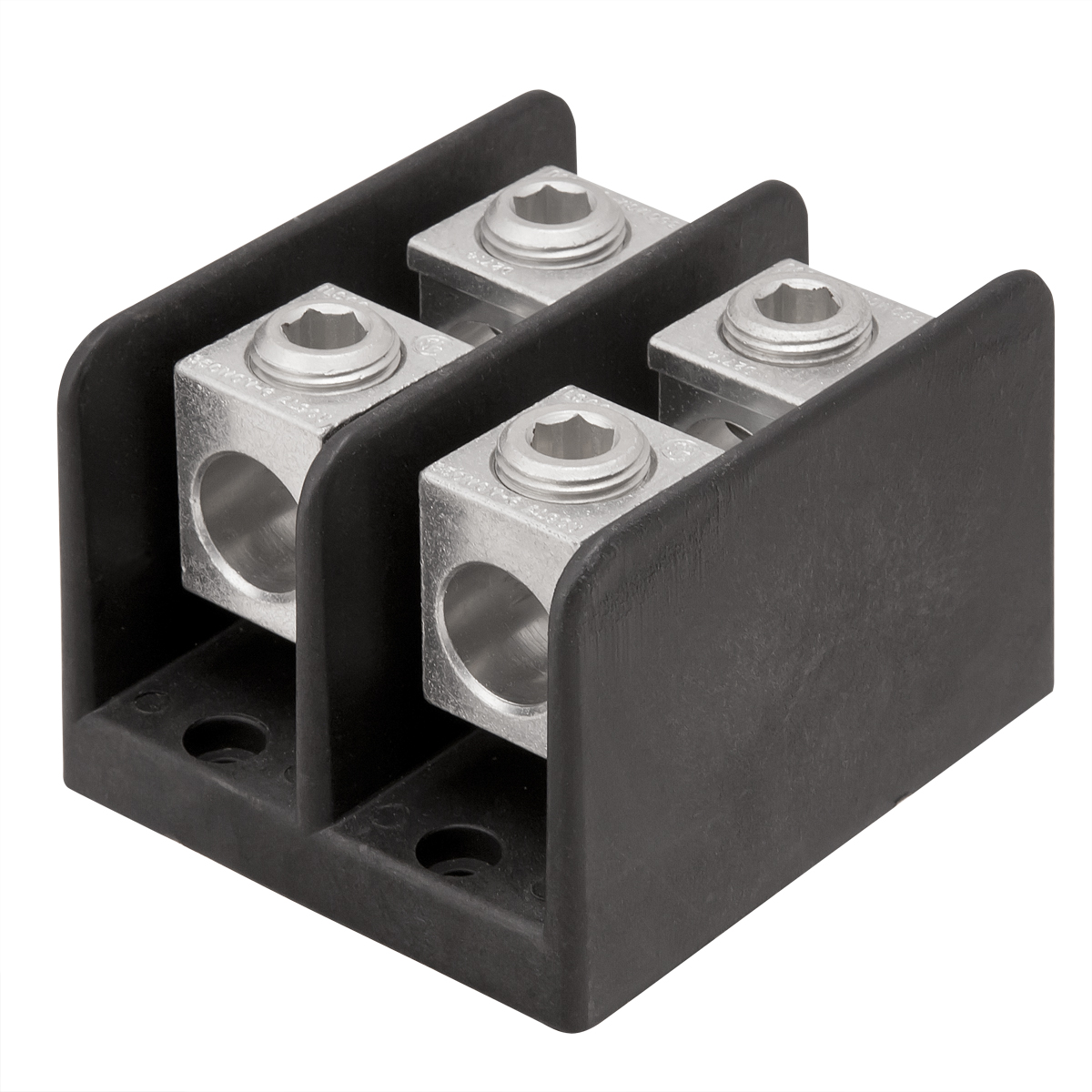 ILSCO® ClearChoice® Power Distribution Block, Type PDB Large Mechanical, 600 VAC, 310 A, 2 Pole, 1 Primary Connections/Pole, 12 Secondary Connection/Pole, 6 AWG to 350 kcmil, 14 to 4 AWG Wire, 10 kA Short Circuit, Aluminum Alloy, Electro-Plated Tin, Black, 5-11/16 in L x 5-1/2 in W x 3-1/2 in H Dimensions