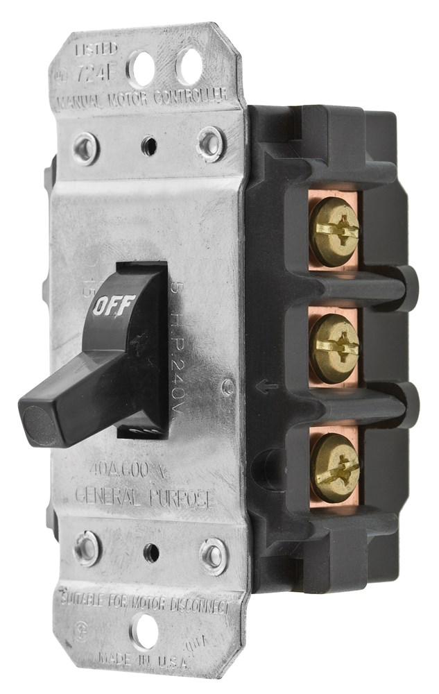 Bryant Electric Disconnect Toggle Switch, Industrial Grade, 600 VAC, 30 A, 18000 W, 3 Poles, Side Wired, Threaded, 10000 Operating Cycles, Black, 3.78 in H x 2.25 in W x 2.43 in D