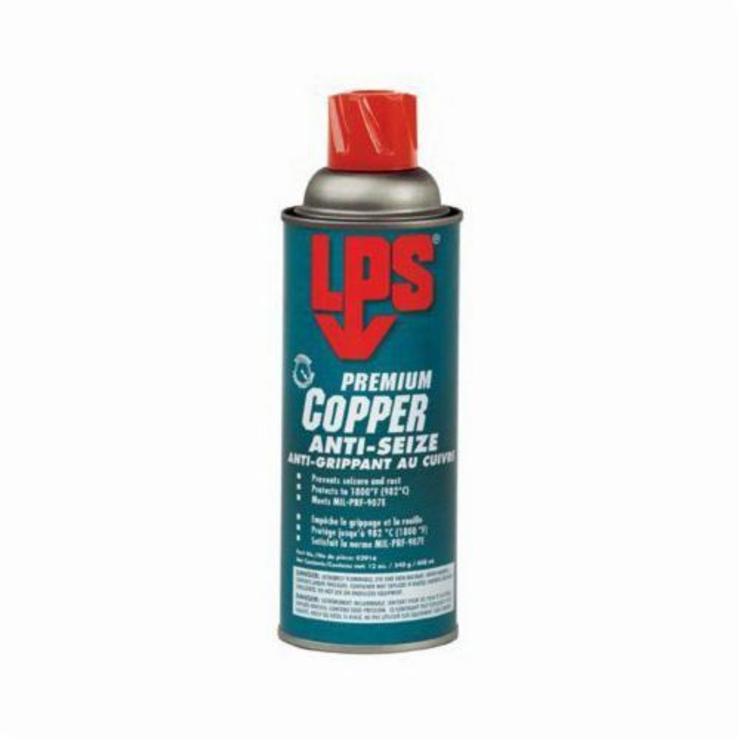 LPS® Anti-Seize Lubricant, Lead Free, Aerosol Can, 12 oz, Composition: Petroleum Gases, Liquefied, Sweetened, Petroleum Oil, Residual Oils, Petroleum, Solvent-Refined, Copper, Copper Compounds, Solvent Naphtha (Petroleum), Light Aliphatic, Acetone, Magnesium Silicate Hydrate, Copper Brown, Slight Petroleum, -65 to 1800 deg F, 0.99 Specific Gravity, >104 deg F Flash, 0.394 VOC, 6600 cPs Viscosity, Military Grade