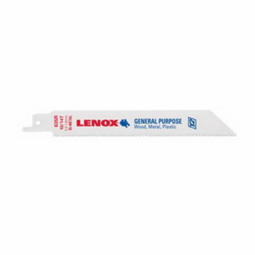 LENOX® TOOLS Reciprocating Saw Blade, General Purpose Shatter-Resistant, 8 in Length, 3/4 in Width, 0.035 in Thickness, 10/14, Patented Teeth, 1/2 in Tang, Universal/Toothed Edge Tang, HSS-Co 8 Cutting Edge, Steel Body, Applicable Materials: Medium Metal, Nail Embedded Wood, Non-Ferrous Metal and Plastic