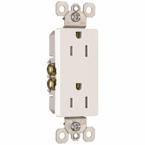 Pass & Seymour® Straight Blade Receptacle, 2-Gang Decorator Tamper Resistant Weather Resistant, 125 VAC, 15 A, 2 Pole, 3 Wires, NEMA 5-15R, Commercial/Residential Grade, Side Wired Terminal, Thermoplastic, White, 4.2 in H x 1.29 in W x 1 in D