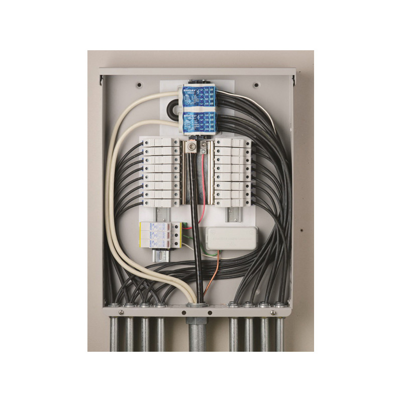 nVent ERIFLEX Distribution Block, Halogen Free, 1000 VAC/DC, 1000 VAC/1500 VDC, 400 A, 1 Pole, 1 Primary Connections/Pole, 7 Secondary Connection/Pole, 35 to 95 sq-mm Line Side Compact Stranded Wire, 8 to 3/0 AWG Line Side Wire, (12) 2.5 to 10 sq-mm Load Side Compact Stranded Wire, (12) 2.5 to 10 sq-mm Ferrule Load Side Stranded Wire, (12) 14 to 6 AWG Load Side Wire Wire, 10 kA Short Circuit Current Rating, Copper/Thermoplastic, Tinned, 2.2 in W x 1.99 in D x 3.79 in H