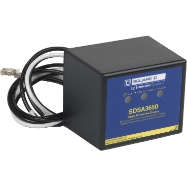 Square D™ brand Surgelogic™ SDSA3650 products are compact and affordable surge protective devices (SPDs). SDSA3650 SPDs offer a simple means to bring down initial surges to manageable levels and can offer additional value in a cascaded SPD system. Their compact design allows surge suppression to be installed adjacent to power panels or directly on sensitive equipment.