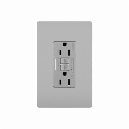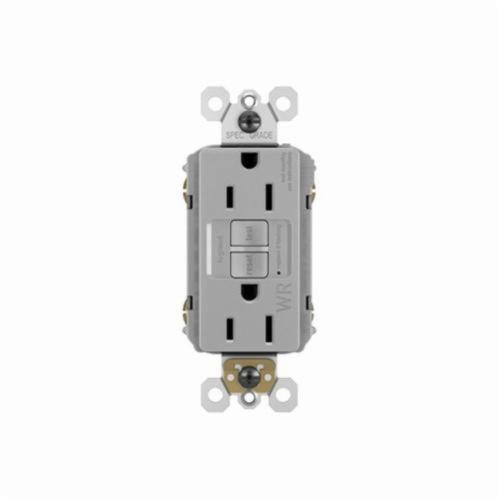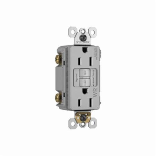 Pass & Seymour® radiant® Duplex GFCI Receptacle, Self-Test Tamper/Weather Resistant, Series: 1597TRW, 125 VAC, 15 A, 60 Hz, 2 Pole, 3 Wires, NEMA 5-15R, Residential/Specification Grade, -35 to 66 deg C, Screw Terminal, Nylon, Gray, 4.2 in H x 1.73 in W x 1.03 in D