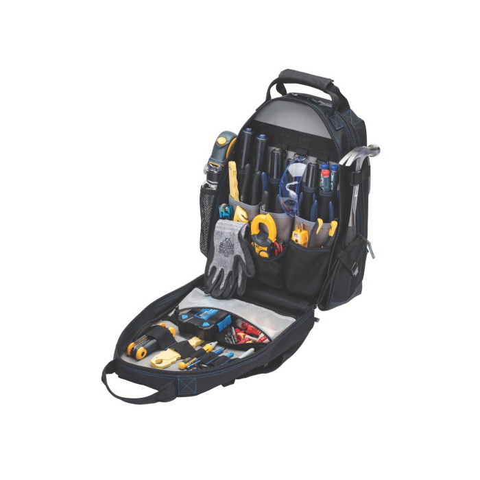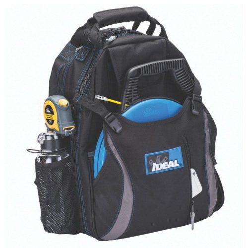 Introducing IDEAL® Dual Compartment tool backpack that provides a solution for any tradesman needing to transport tools while still having their hands free. The versatile design includes two compartments that can open to a lay-flat position for flexible use on the floor, bench or hoist position. With an abundance of interior and exterior organizational pockets as well as dedicated space for a laptop and/or tablet. Exterior pockets include a large double slotted front pocket that easily accommodates fish tapes, a side tall tool carrier that can easily fit tools up to 18 in., mesh water bottle carrier and a nickel plated tape measure holder. The interior includes a wide variety of tiered pockets to hold your screwdrivers, meters, bit holders, power drills, etc. In addition, the backpack contains webbed tool holders for long tools as well as a variety of D-rings to arrange storage or hook work gear. Constructed from durable fabric with heavy duty YKK® zippers that can survive the heavy loads of everyday use. The reinforced comfort back and lumbar padding, with airflow design, provides maximum comfort and includes adjustable padded shoulder and chest straps. The heavy duty abrasion resistant reinforced base with 4 ABS foot pads are designed to protect your tools from the elements without discomfort to your lower back.