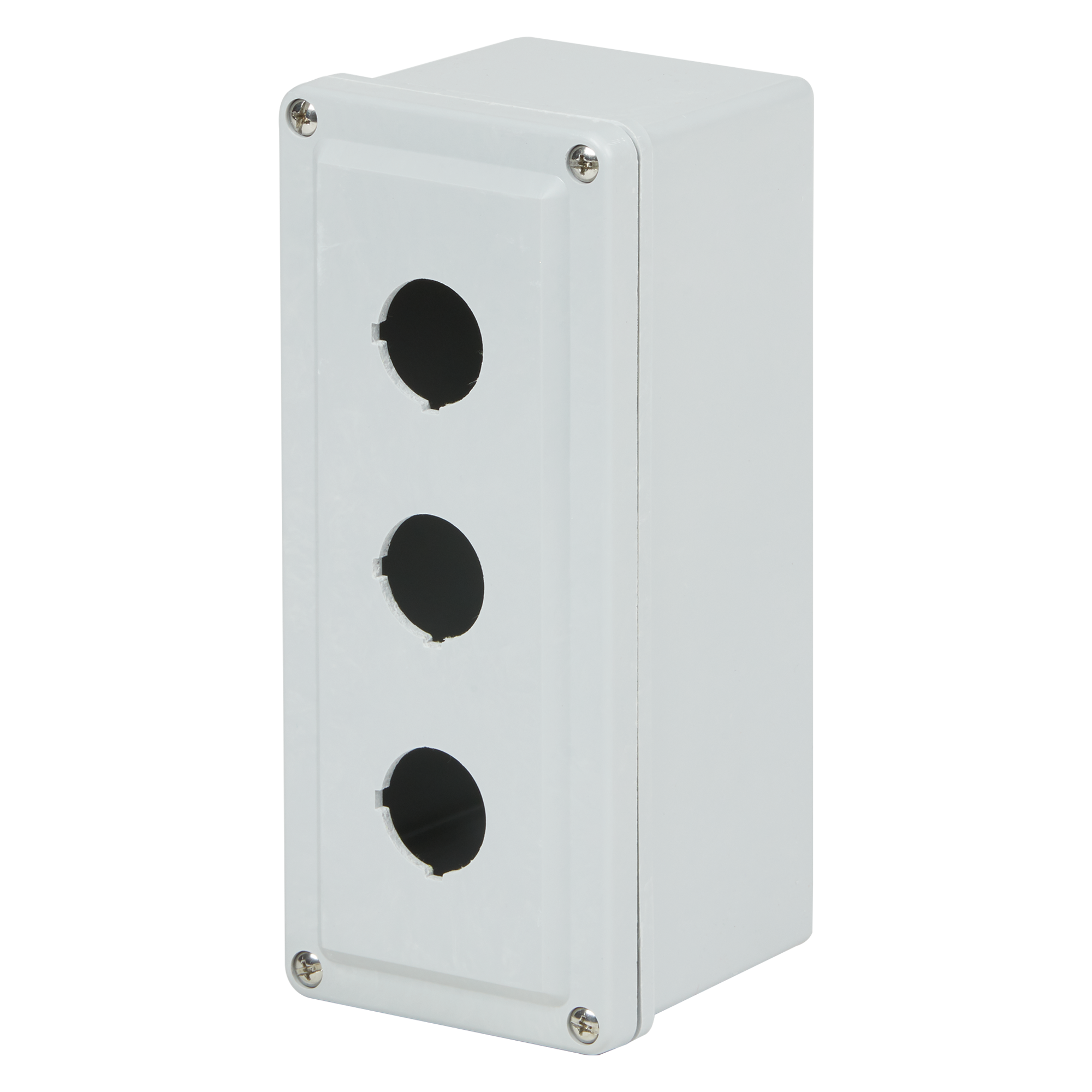 Robroy Pushbutton Enclosure, Series: CF Series, 8 in Length, 4 in Width, 4 in Depth, NEMA 1/3R/4X/6P/12 NEMA Rating, Lift-Off Screw Cover, 3 Outlets, Feet Mounting, 76 to 274 deg F, Fiberglass Reinforced Polyester, Smooth, Glacier Gray
