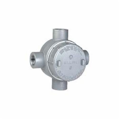 Killark® Conduit Outlet Body, Type X, Series: GEC, 1 in Hub, 4 Hubs, 19 cu-in, Form 1, Threaded, Aluminum, Gray, 5-5/16 in H x 5-5/16 in W x 3-5/8 in D