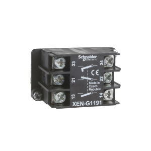 This contact block allows fast and easy replacement and configuration of your push buttons and selector switches. It is easily installed and replaced on XACM and XACB pendant control stations and connects to control circuits with simple screw-clamp connections. It protects operators from unexpected contact with live circuits thanks to its IP20 protection index.