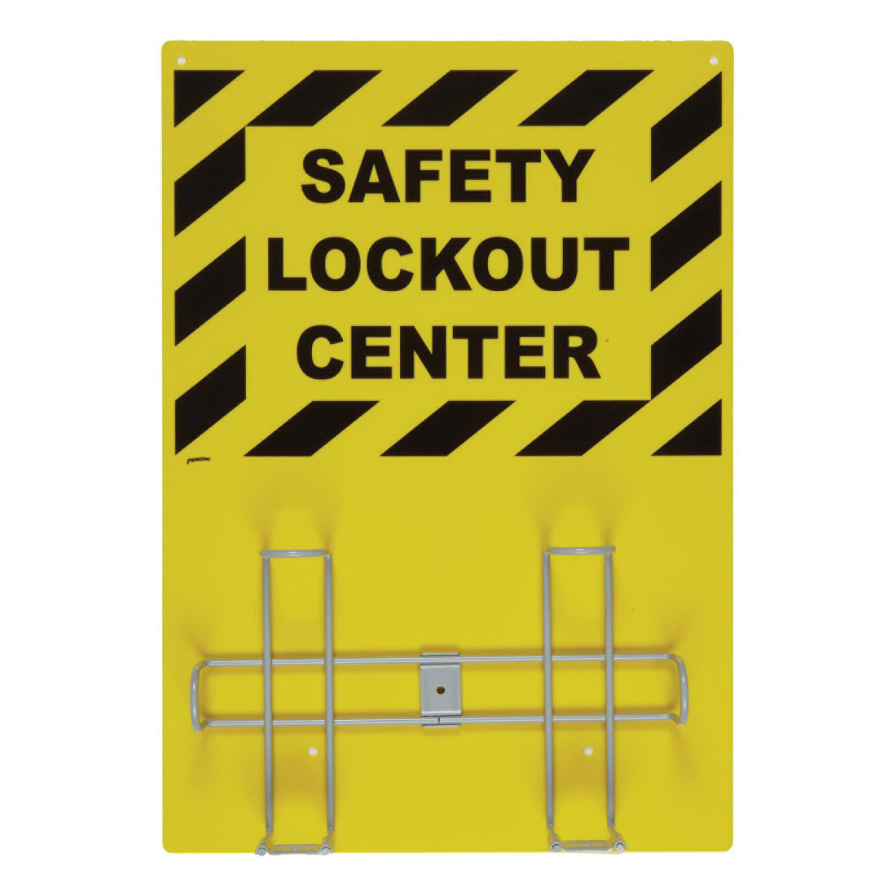 Brady® PRINZING® Wire Wall Rack and Sign Kit, Unfilled, Header: No Header, Legend: SAFETY LOCKOUT CENTER, Wall Mounting, 7 in Height, 10 in Width, Black/Yellow Legend/Background