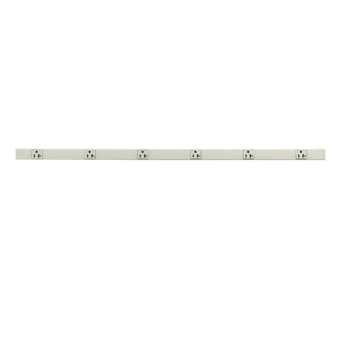 Wiring Device-Kellems PlugTrak® Metallic Raceway, Fully Insulated Pre-Wired Standard, 36 in Length, 1.6 in Width, 1 in Height, 125 VAC, 6 Outlets, 6 in Outlet Center Distance, Single Outlet, Outlet Configuration: 1-Circuit, 20 A, NEMA 5-15R/5-20R Outlet, Threaded Mounting, Steel, Ivory