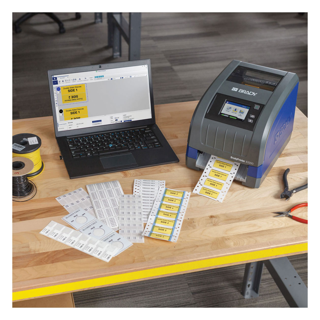 Brady® BradyPrinter™ Label Printer, Series: i3300, Thermal Transfer Print, 4-1/4 in Tape Width, 5 ft Tape Length, 4 in/s, 300 dpi Resolution Printhead, 100 to 240 VAC at 50 to 60 Hz, Color LCD Touch Screen, 9-1/2 in H x 9 in W x 12 in D