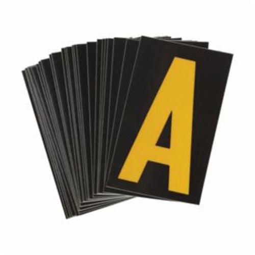 Brady® Bradylite® Letter Label, Series: 5000, Character: A, 2-1/2 in Character Height, Yellow Character, Black Background, B-997 Reflective Sheeting Vinyl, 25 Cards, 2-7/8 in Overall Height, 1-3/4 in Overall Width, 1 Labels per Card