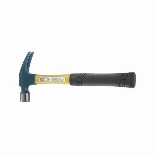Klein® Claw Hammer, Heavy Duty Straight, 13 in Overall Length, Smooth Face, 1 in Face Dia, 16 oz Head, Steel Head, Fiberglass Handle, Perforated Neoprene Grip, Straight Claw Style