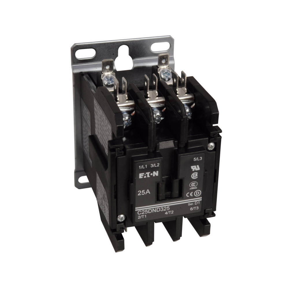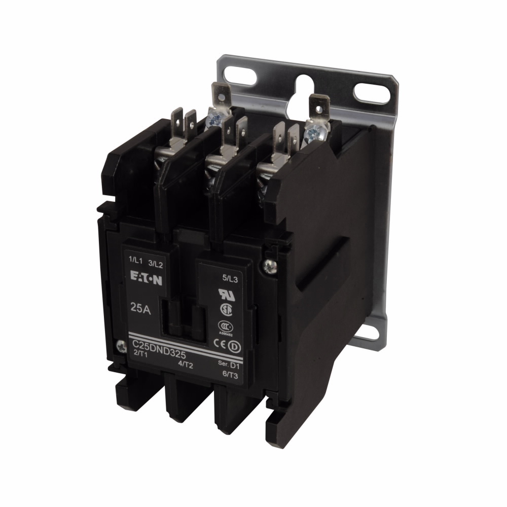 C25DND325A D-Frame Non-Reversing Definite Purpose Control Contactor, 110/120 VAC V Coil, 25 A Inductive, 35 A Resistive, 3 Poles