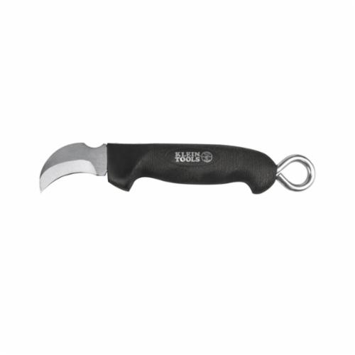 The Klein-Kurve® skinning knife from Klein Tools features a 2 in blade that gives increased control when scoring and slitting the cable jacket. A notch on the back of the blade works well for scraping and removing insulation. The oversized ring provides added strength and makes it easy to store.