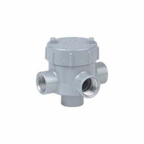 Killark® Conduit Outlet Body, Series: GEM, Style TA Body, 1/2 in Hub, 4 Hubs, 8 cu-in Capacity, Threaded Connection, Copper Free Aluminum, Powder Coated, Gray, 3-5/8 in H x 4-7/16 in W x 3-13/16 in D Dimensions